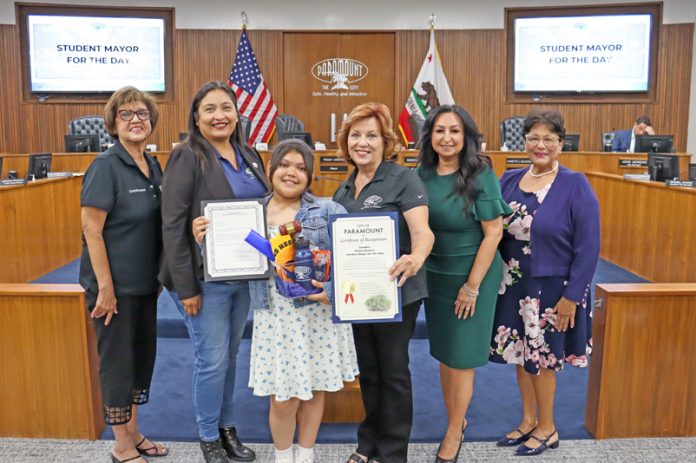 Emma Romero, a fifth-grade student from Roosevelt Elementary School, was sworn in as Student Mayor for the Day at the Sept. 23 City Council Meeting. This special program, a partnership between the city of Paramount and PUSD, allows participating schools to select a deserving Fourth- or Fifth-grade student to serve in this honorary role. As student mayor, Emma had the unique opportunity to sit alongside the mayor and help lead the City Council meeting.